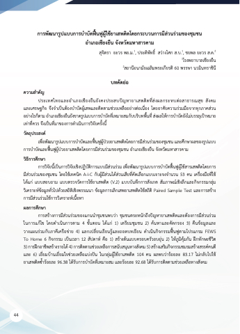 การพ้ฒนารูปแบบการบำบ้ดฟ้นฟูผูู้้ใชุ้ยาเสพติิดโดยกระบวนการม่ส่วนร่วมของชุุมชน