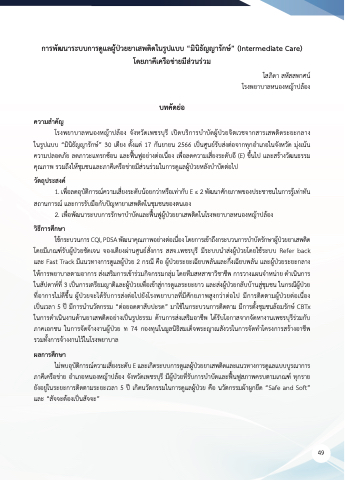 การพ้ฒนาระบบการดูแลผูู้้ป่วยยาเสพติิดในรูปแบบ “มินิธ้ญญาร้กษ์” (Intermediate Care)