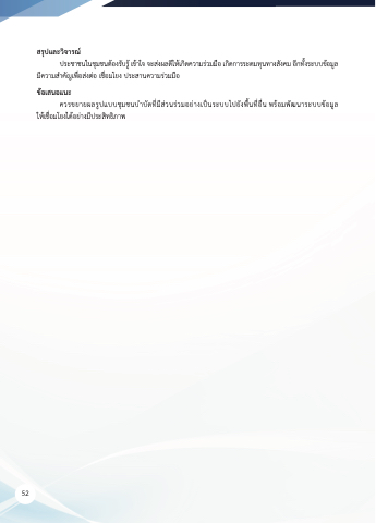 สรุปและวิิจารณ์ ประชาชนในชุมชนติ้องรับ้ร่้ เข้าใจ จะส่งผลดีให้เกิดคัวัามืร่วัมืมืือ เกิดการระดมืทุนทางสังคัมื อีกทังระบ้บ้ข้อมื่ล