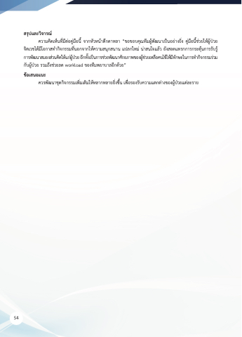 คัวัรพัฒนาชุดกิจกรรมเพิมเติิมให้หลากหลายยิงข่น เพือรองรับ้คัวัามแตกติ่างของผ่้ป่วยแติ่ละราย