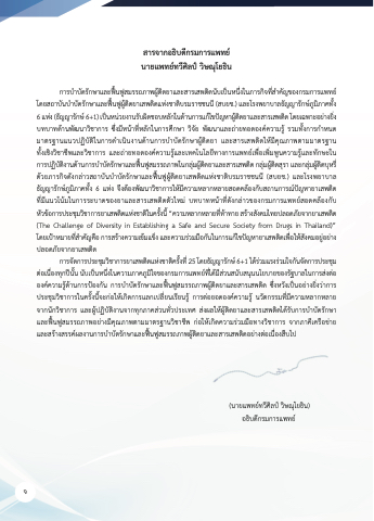 (The Challenge of Diversity in Establishing a Safe and Secure Society from Drugs in Thailand)”