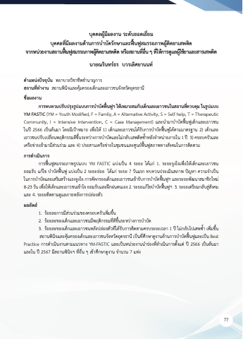 การทบที่วินปร้บปรุงรูปแบบการบำบ้ดฟ้นฟูฯ ให่้เหมาะสมก้บเด็กและเยาวิชุนในสถานที่่ควบคุม ในรูปแบบ
