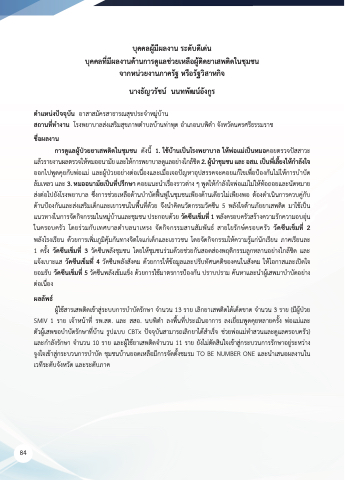 แล้วรายงานผลตรวจให้หมออนามืัย และให้การพยาบาลด่แลอย่างใกล้ชิด 2. ผูู้้นำชุุมชน และ อสม. เป็นพ่เล่ยงให่้กำล้งใจ