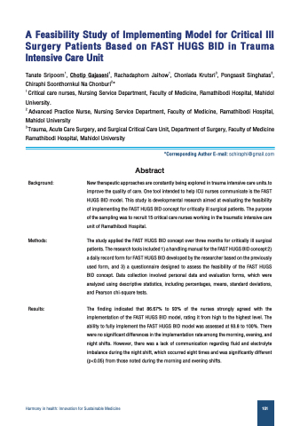 1 Critical care nurses, Nursing Service Department, Faculty of Medicine, Ramathibodi Hospital, Mahidol
