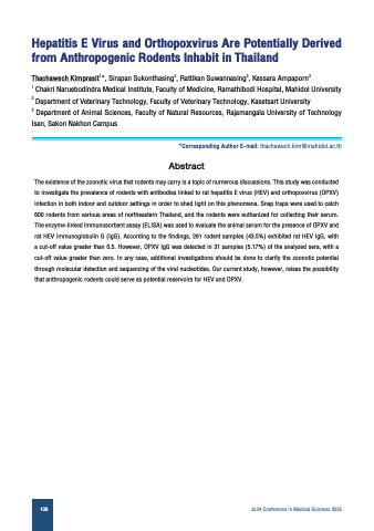 600 rodents from various areas of northeastern Thailand, and the rodents were euthanized for collecting their serum.