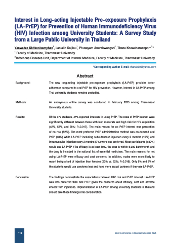 effects from injections. Implementation of LA-PrEP among university students in Thailand