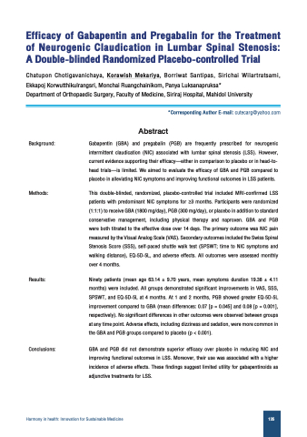 placebo in alleviating NIC symptoms and improving functional outcomes in LSS patients.