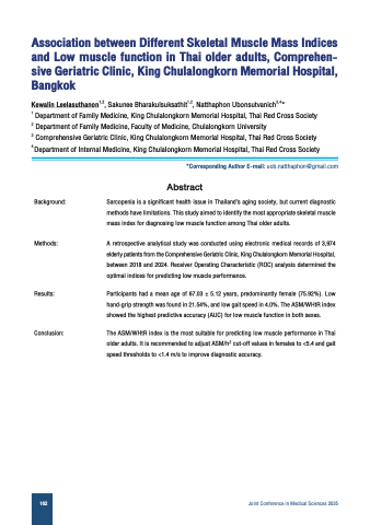 Sarcopenia is a significant health issue in Thailand’s aging society, but current diagnostic