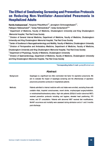 2 Division of General Internal Medicine, Department of Medicine, Faculty of Medicine, Chulalongkorn
