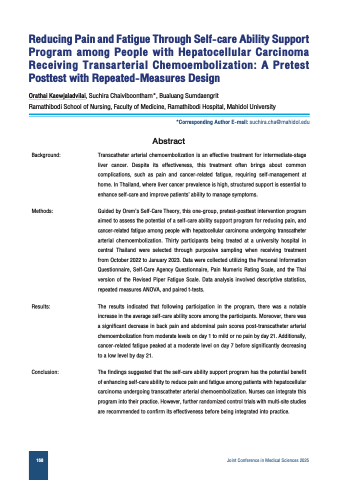of enhancing self-care ability to reduce pain and fatigue among patients with hepatocellular