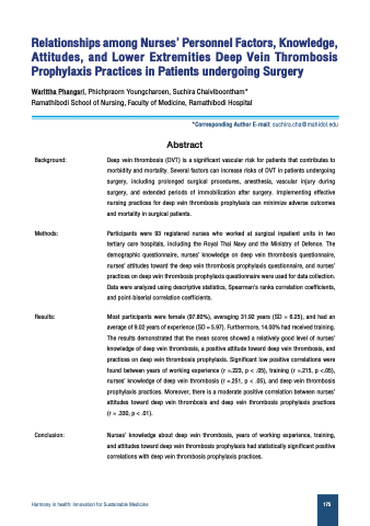 Conclusion: Nurses’ knowledge about deep vein thrombosis, years of working experience, training,