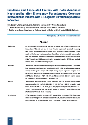 CIN in Thai patients with ST-segment elevation myocardial infarction (STEMI) who received