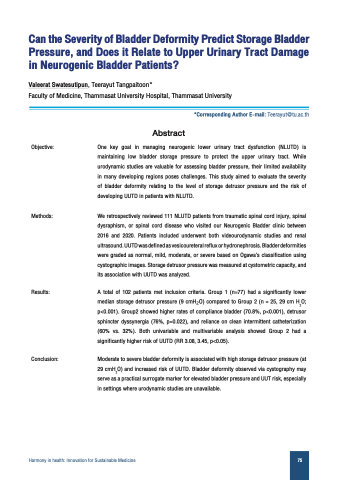Conclusion: Moderate to severe bladder deformity is associated with high storage detrusor pressure (at