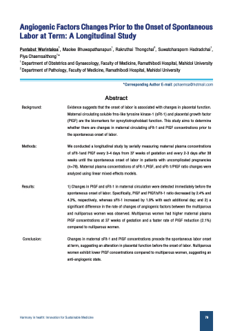 spontaneous onset of labor. Specifically, PlGF and PlGF/sFlt-1 ratio decreased by 2.4% and