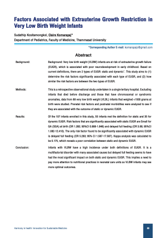 dynamic EUGR. Risk factors that are significantly associated with static EUGR are Small for