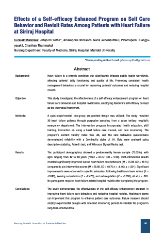 Objective: This study investigated the effectiveness of a self-efficacy enhancement program on heart