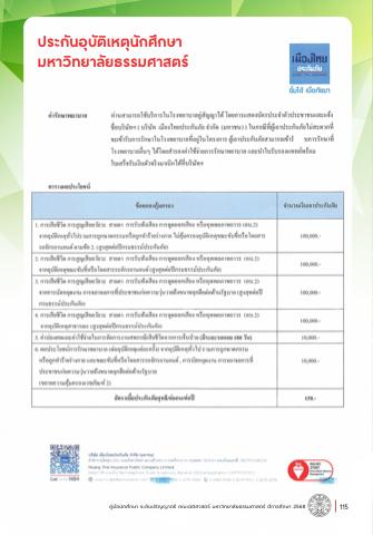 ประกันัอุบัติเหตุนัักศึึกษา มหาวิิทยาลััยธรรมืศึาสตร์ คู่มือนักศึกษา ระดับปริญญาตรี คณะนิติศาสตร์ มหาวิทยาลัยธรรมศาสตร์ ปีการศึกษา 2568 คู่มือนักศึกษา ระดับปริญญาตรี คณะนิติศาสตร์ มหาวิทยาลัยธรรมศาสตร์ ปีการศึกษา 2568 115 115