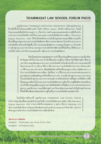 กลุ่่มกิจกรรม “THAMMASAT LAW SCHOOL FORUM PACIS” เป็็นกลุ่่มกิจกรรม