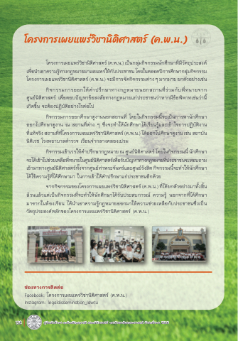 จากกิจกรรมของโครงการเผยแพื่รวัิชาน