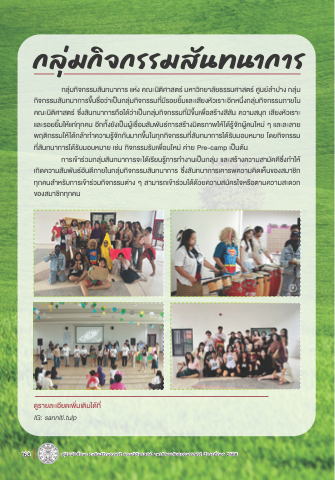 คณะนิติิศาสัติร์ ซึ่่งสัันทนาการถืือได้้วิาเป็นกลุ่่มกิจกรรมท่ม่ขึ้้นเพื่่อสัร้างสั่สััน ความสัน่ก เสั่ยงห่ัวเราะ