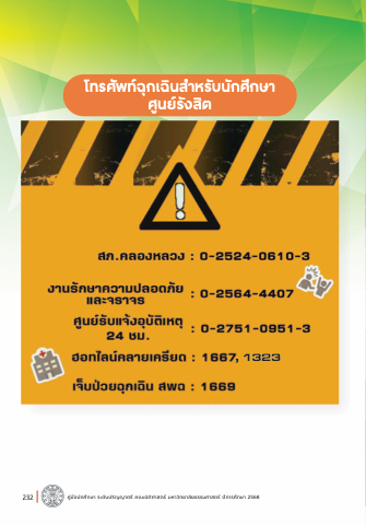 โทรศึัพท์ฉุกเฉินัสำหรับนัักศึึกษา ศึ่นัย์รังสิต , 1323 232 232 คู่มือนักศึกษา ระดับปริญญาตรี คณะนิติศาสตร์ มหาวิทยาลัยธรรมศาสตร์ ปีการศึกษา 2568คู่มือนักศึกษา ระดับปริญญาตรี คณะนิติศาสตร์ มหาวิทยาลัยธรรมศาสตร์ ปีการศึกษา 2568