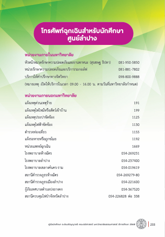 โทรศึัพท์ฉุกเฉินัสำหรับนัักศึึกษา