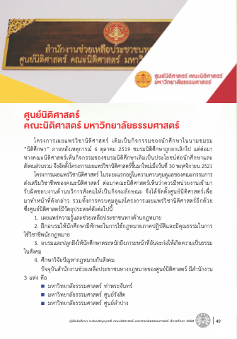 ศึ่นัย์นัิติศาสตร์ คณะนัิติศาสตร์ มหาวิิทยาลััยธรรมืศึาสตร์ โครงการเผยแพร่วุิชานุิต่ิศาสิต่ร์ เดิมเป็นกิิจักิรรมของนุักิศึกษาในุนุามชมรม