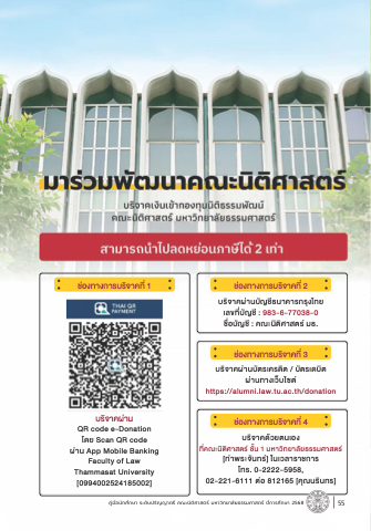 ผ่่านทางเว็็บไซติ์ https://alumni.law.tu.ac.th/donation