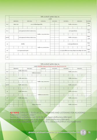 หมายเหตุ นักศูึกษาปีีท่ 2 เลัือกโควิติา EL217 SPEAKING AND LISTENING FOR ACADEMIC