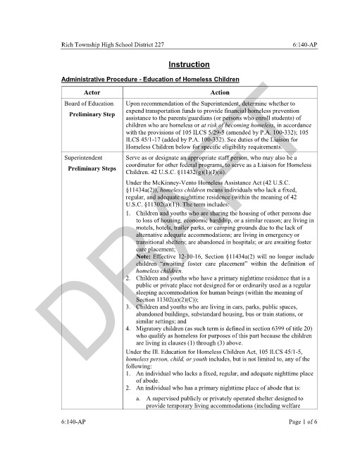 Under the Ill. Education for Homeless Children Act, 105 ILCS 45/1-5,