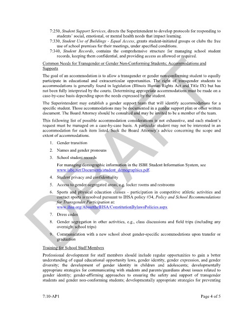 specific student. Those accommodations may be documented in a gender support plan or other written
