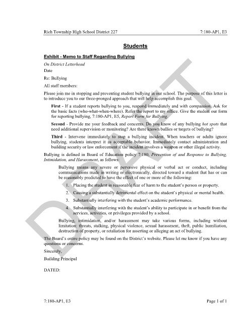 Please join me in stopping and preventing student bullying in our school. The purpose of this letter is