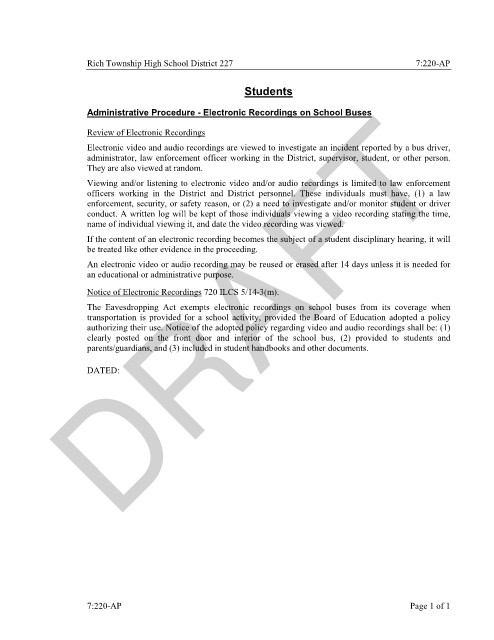 authorizing their use. Notice of the adopted policy regarding video and audio recordings shall be: (1)