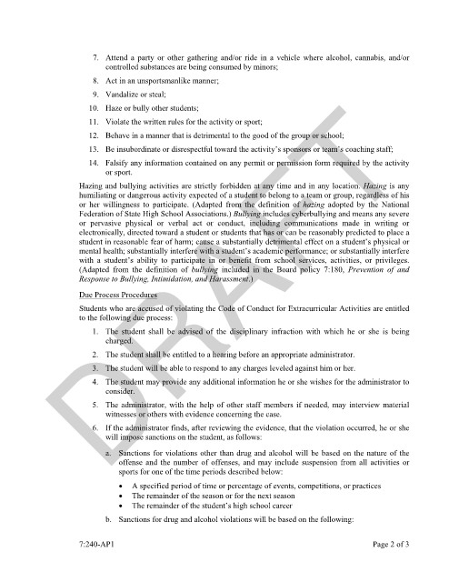 Students who are accused of violating the Code of Conduct for Extracurricular Activities are entitled
