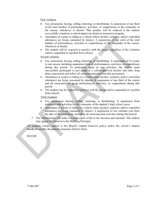 All students remain subject to the Board’s student behavior policy and/or the school’s student