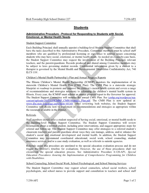 The Student Support Committee will monitor the annual CMH Plan. See icmhp.org/wordpress/wp-