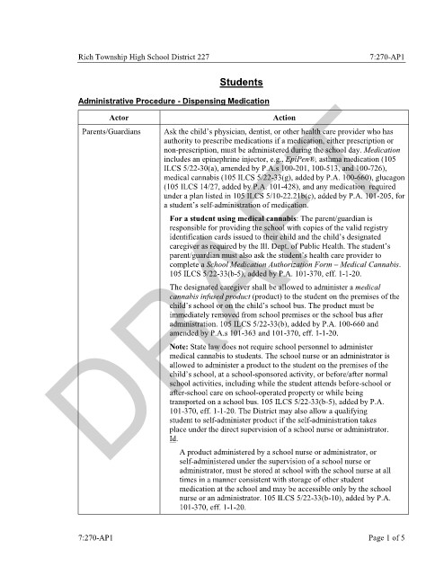 (105 ILCS 14/27, added by P.A. 101-428), and any medication required