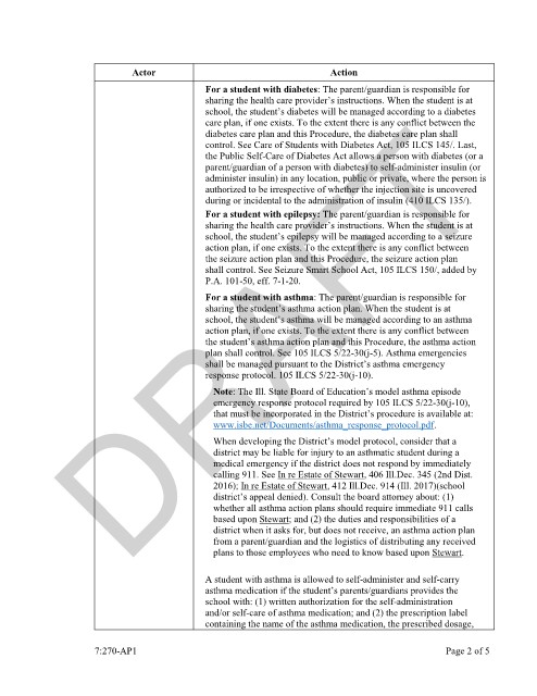plan shall control. See 105 ILCS 5/22-30(j-5). Asthma emergencies