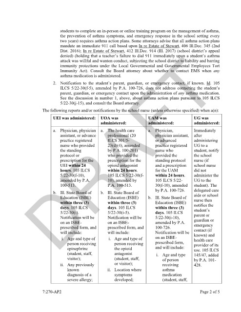 See the discussion in number 1, above, about asthma action plans pursuant to 105 ILCS