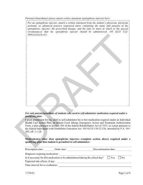 For an epinephrine injector, attach a written statement from the student’s physician, physician