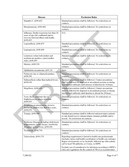 Hepatitis C, §690.452 Standard precautions shall be followed. No restrictions on