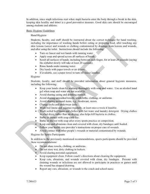• Avoid sharing unwashed towels, washcloths, clothing, or uniforms.