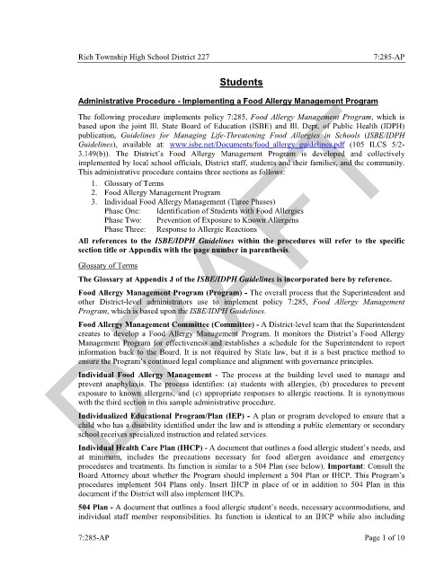 Guidelines), available at: www.isbe.net/Documents/food_allergy_guidelines.pdf (105 ILCS 5/2-
