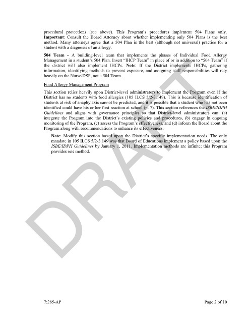 identified could have his or her first reaction at school (p. 7). This section references the ISBE/IDPH