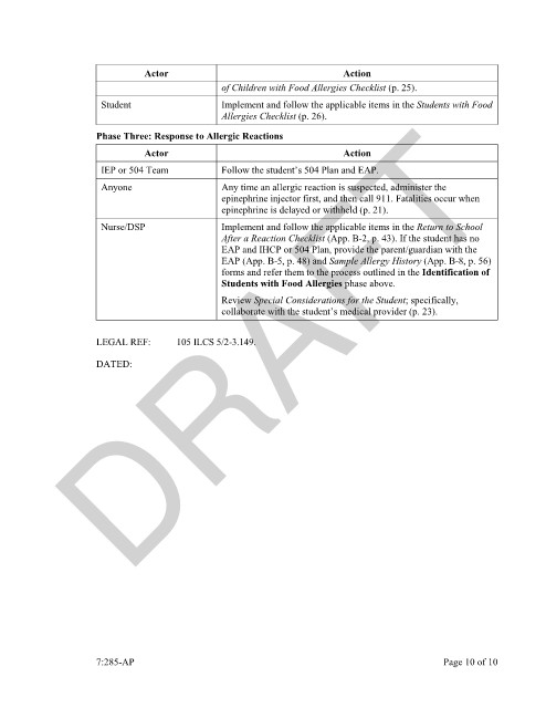 EAP (App. B-5, p. 48) and Sample Allergy History (App. B-8, p. 56)
