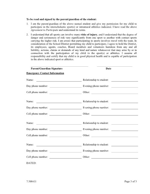 participate in the interscholastic sport(s) or intramural athletics indicated. I have read the above