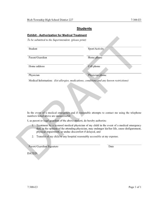 1. Treatment by a licensed medical physician of my child in the event of a medical emergency