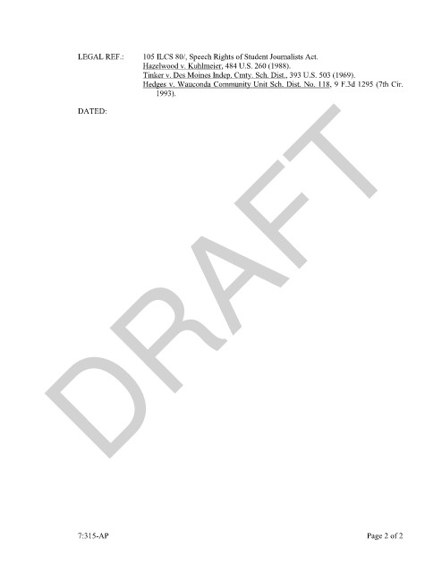 LEGAL REF.: 105 ILCS 80/, Speech Rights of Student Journalists Act.