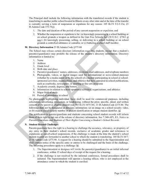 M. Directory Information 23 Ill.Admin.Code §375.80