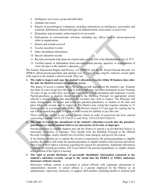 1. The right to inspect and copy the student’s education records within 10 business days after